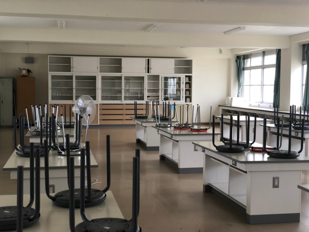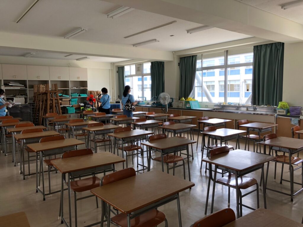 ホームルーム教室より少し大きめで、4人分の流しが窓側に完備されています。