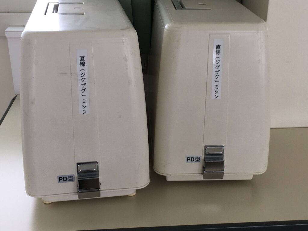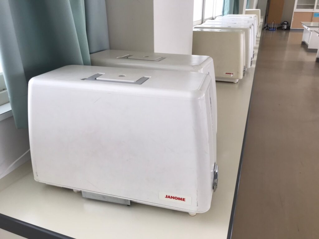 一人につき一台使用可能な台数のミシンが完備されています。