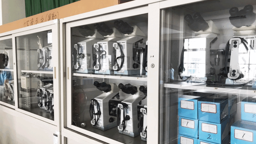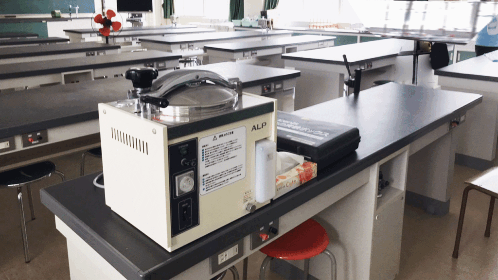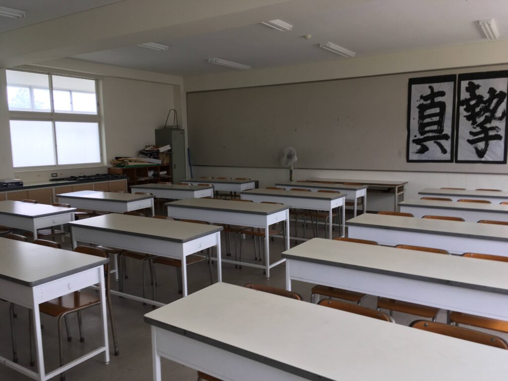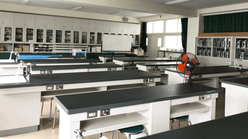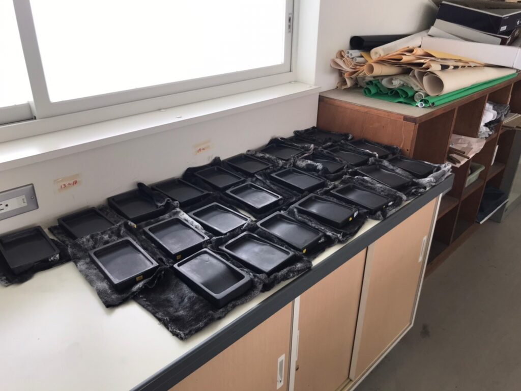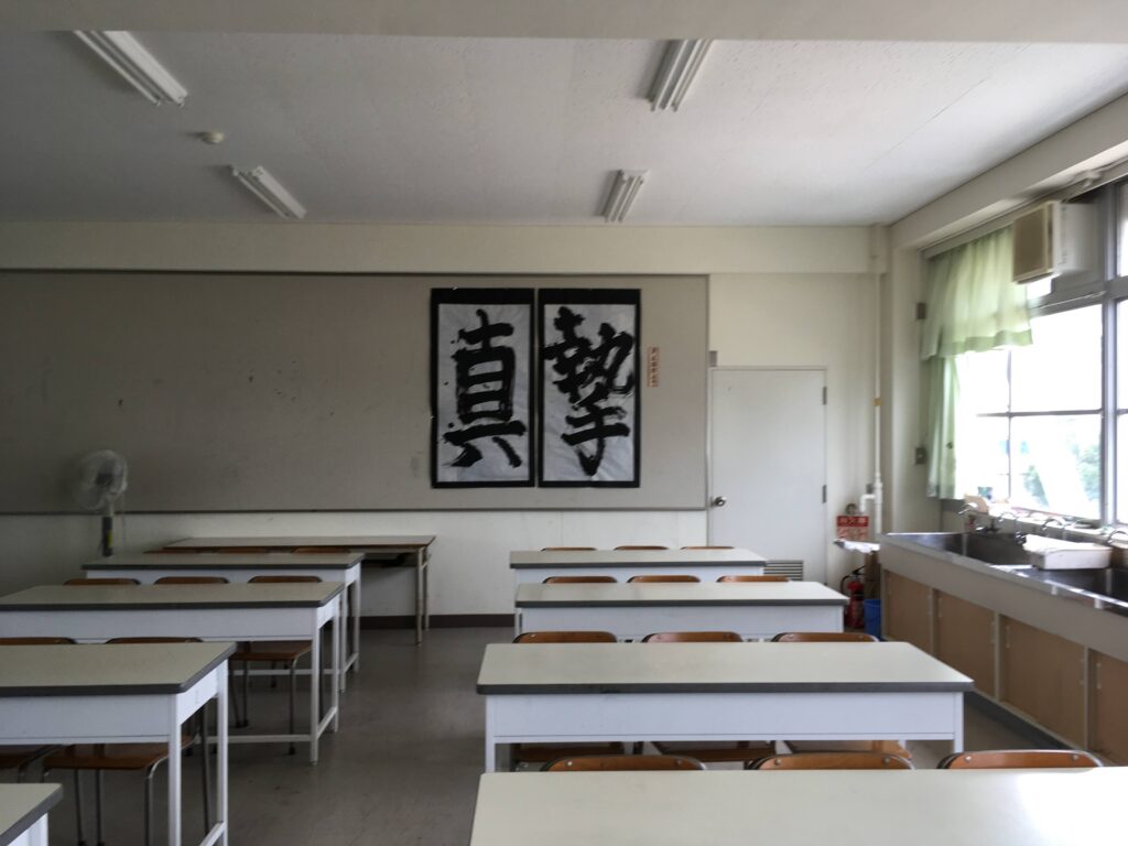 書道専用デスク、ステンレスの流し台がたくさんあり、